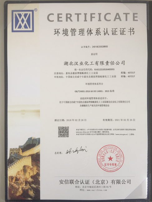 環(huán)境管理體系認(rèn)證證書